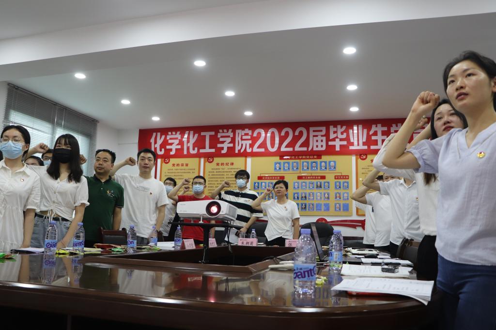 在交流阶段,毕业生党员逐一分享自己大学四年来的的收获并留下了宝贵建议。毕业生党员们对母校发自肺腑的感激之情使与会人员深受感动,相信他们定能不忘初心,牢记使命,未来也会更加辉煌。随后各位老师对同学们给予美好祝愿与希冀。会议最后,潘维副书记带领大家重温入党誓词,嘱咐同学们牢记入党动机,坚定信念,严于律己。