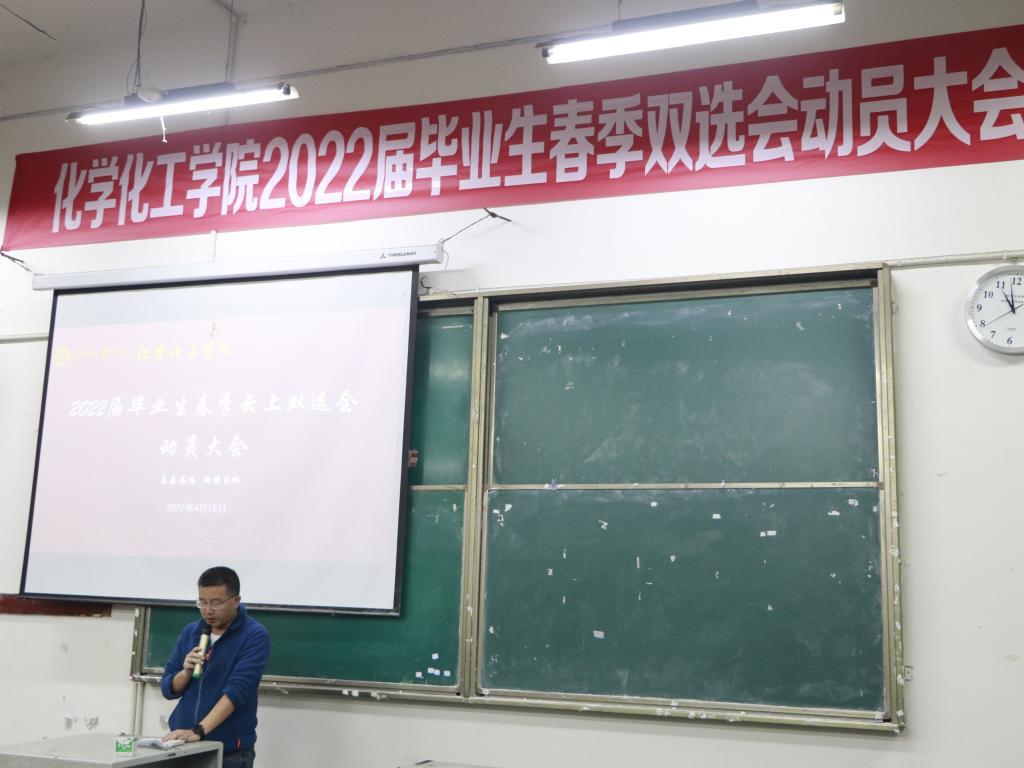 2022年4月15日上午11点,威廉希尔(WilliamHill)于南坝校区一教楼111教室举办了2022届毕业生春季云上双选会动员大会,学院党总支书记朱朝菊、院长赖川、副院长向文军、各教研室主任、学工办全体老师和毕业班带班辅导员及2018级100余名毕业生出席会议,大会由学院党总支副书记潘维主持。