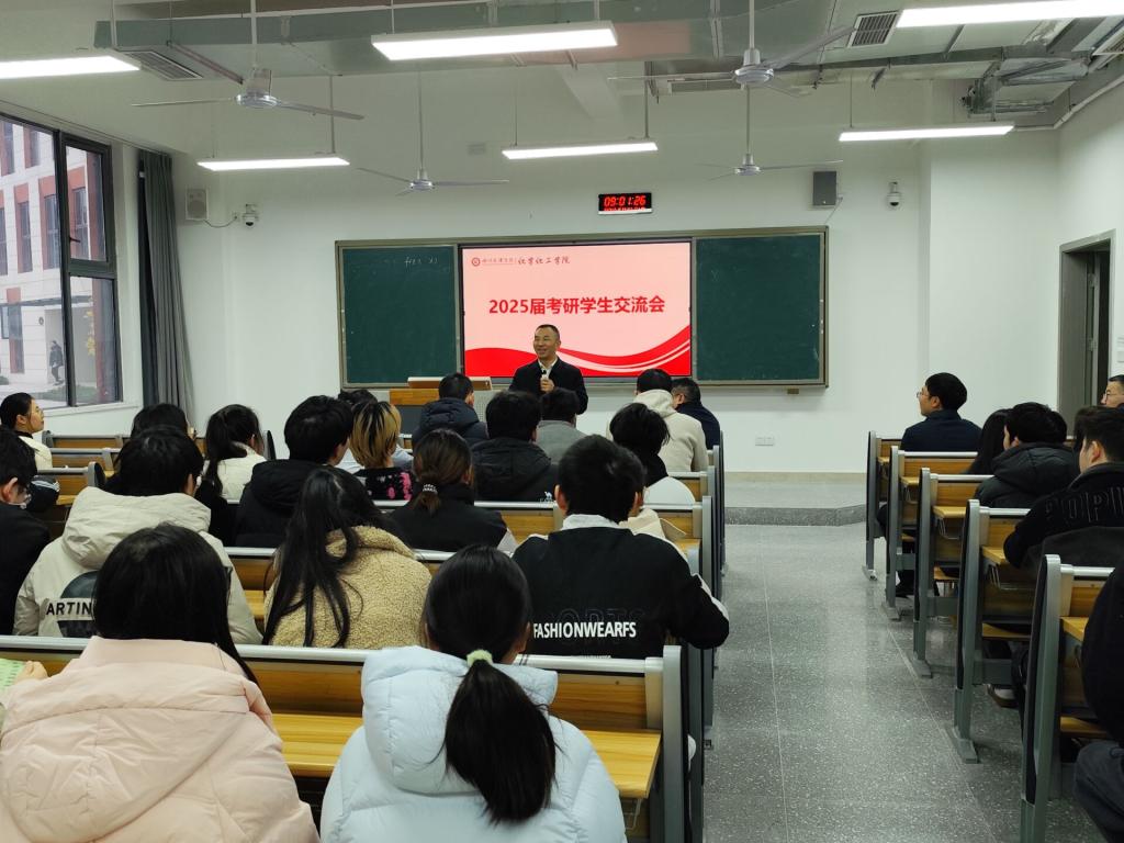 苟校长对备考学生坚韧不拔与勤奋刻苦的精神提出肯定与赞扬。随后,苟校长表示考研是一场考验知识储备与意志品质的征途,每一个挑灯夜战的夜晚,每一次对知识的执着探索,都将成为通往成功道路上的坚实基石。苟校长最后强调,学校及学院要全方位为同学们做好坚实后盾,全力保障学习资源与生活所需;同时他还提醒同学们需注重饮食均衡、保证充足的睡眠,以健硕的体魄与饱满的精神进行最后的冲刺。