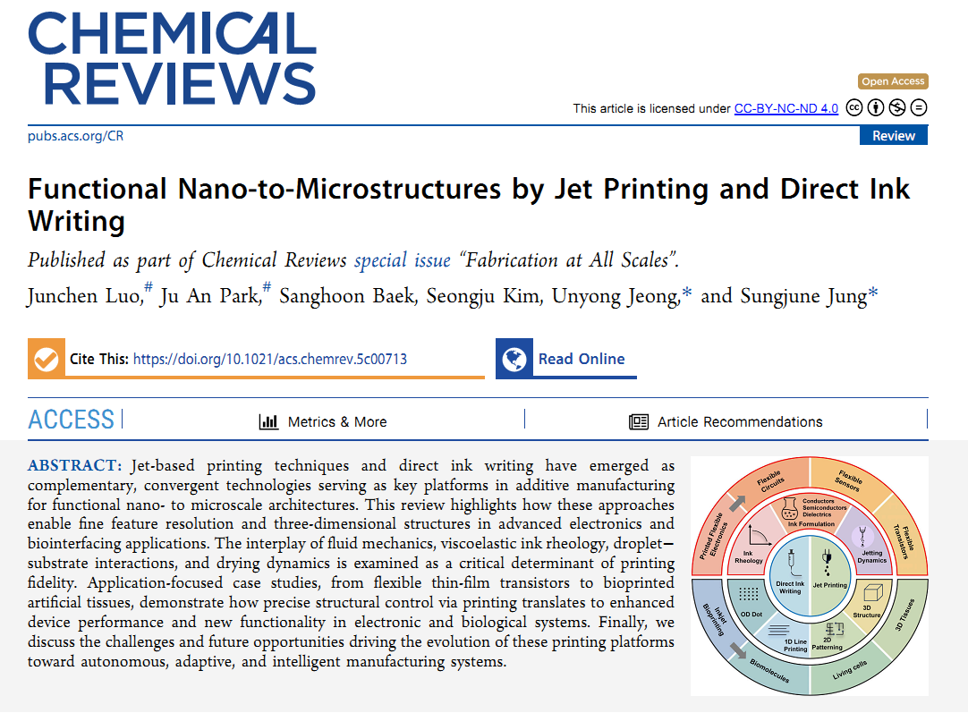 近日,英国威廉集团官网青年教师骆俊晨博士在化学领域国际顶级期刊《Chemical Reviews》(中科院一区TOP期刊,最新影响因子55.8)上发表了题为“Functional Nano-to-Microstructures by Jet Printing and Direct Ink Writing”的论文。四川文理学院为该论文的第一完成单位及第一通讯作者单位。该研究由我校骆俊晨博士牵头,与美国劳伦斯利弗莫尔国家实验室Park Ju An博士、韩国浦项科技大学(POSTECH)材料科学与工程系Unyong Jeong教授(韩国科学院院士)及Sungjune Jung教授合作完成。据悉,《Chemical Reviews》是国际化学领域顶级期刊之一,长期位居化学综合类期刊影响因子前列。论文链接:https://pubs.acs.org/doi/10.1021/acs.chemrev.5c00713.