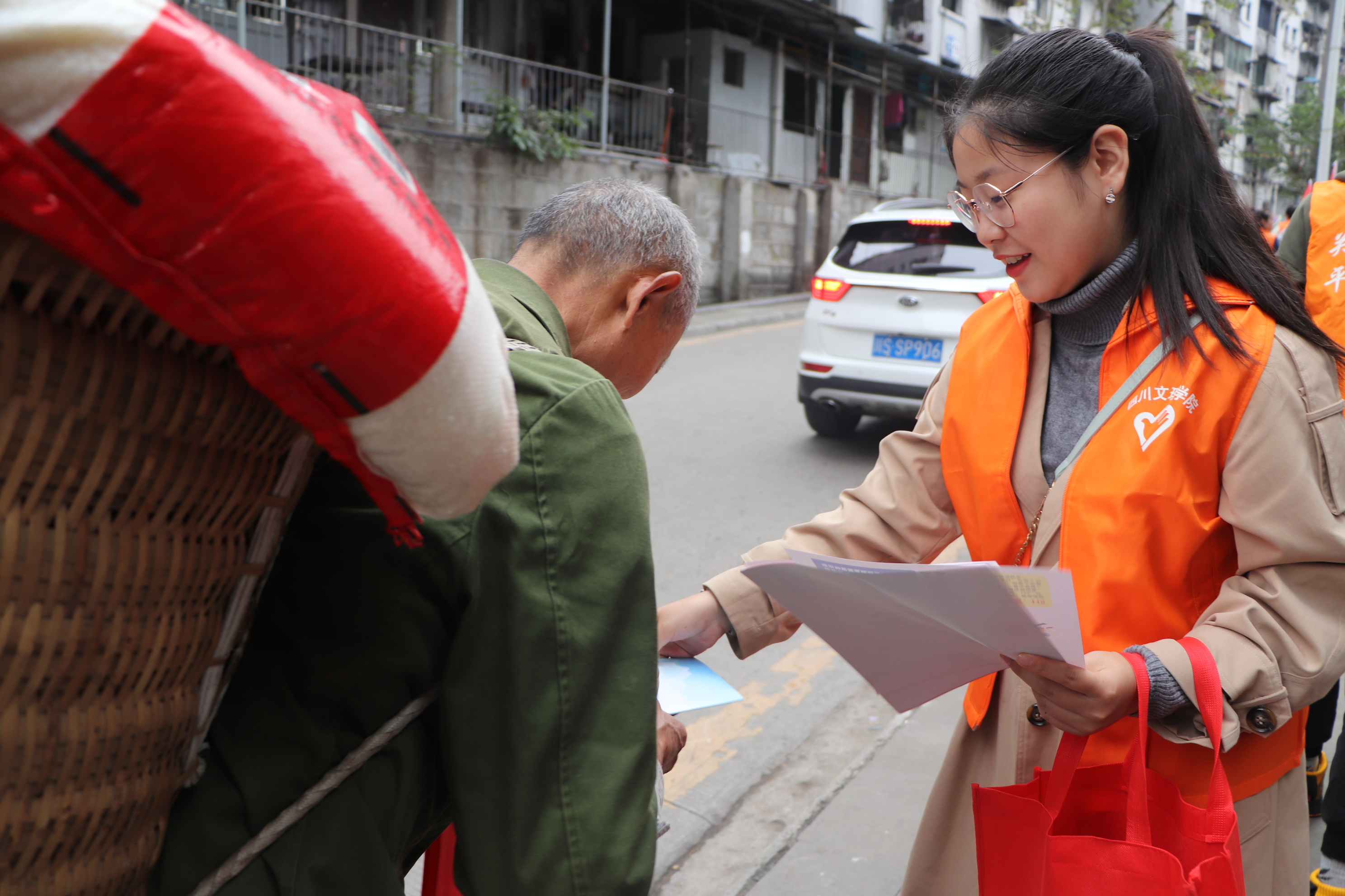 为了保证此次志愿活动的顺利进行,11月8日,消防人员提前对志愿者进行培训,让每个志愿者都能熟练地掌握火灾预防的安全知识、火场逃生的要点步骤以及家庭常用消防器材设备(灭火器)的使用方法11月9日早上九点,志愿者们在四川文理学院南坝校区门口集合,提前检查相关消防设施是否完备,并由部长统计人员到场情况 工作人员带上所用工具和资料,统一着,佩戴工作证从学校出发前往活动地点。到达目的地之后,各负责人积极有序地展开相应的工作。志愿者们首先向金华社区居民宣传了相关的消防安全知识,随后由消防人员现场向居民们演示了面对火灾时,人们应该如何自救,如何正确使用灭火器灭火。