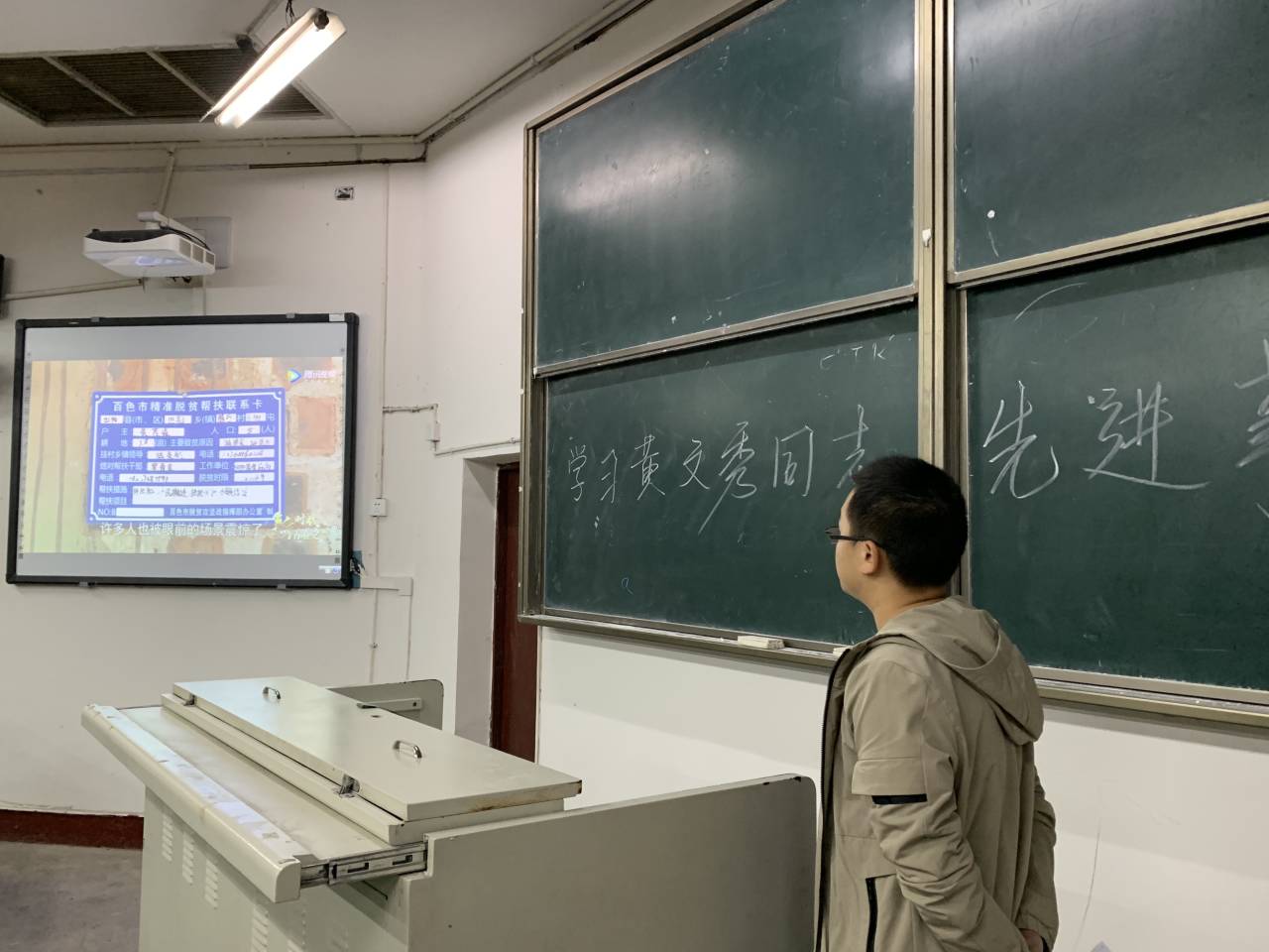 首先,各班辅导员对黄文秀同志的事迹进行了详细介绍:黄文秀同志生前系广西壮族自治区百色市委宣传部副科长、派驻乐业县新化镇百坭村第一书记。她作为北京师范大学的一名法学硕士2016届广西定向选调生,她原本可以选择去更好的地方进行发展,但是她毅然决然地选择回到生她养她的百色,成为百坭村的扶贫第一书记,也正是在这条扶贫的道路上,她遭遇了山洪因公殉职,年仅30岁。她在扶贫日记中写道:“只有扎根于泥土,才能懂得人民。”她是从大山女儿到扶贫战士的时代楷模在脱贫攻坚伟大实践涌现出来的先锋模范。随后,各班辅导员播放了时代楷模黄文秀同志表彰视频。老师和同学们都认真观看了视频,并通过视频真正了解黄文秀同志的相关事迹,她是这个时代的实干者,也是坚守初心的梦想家