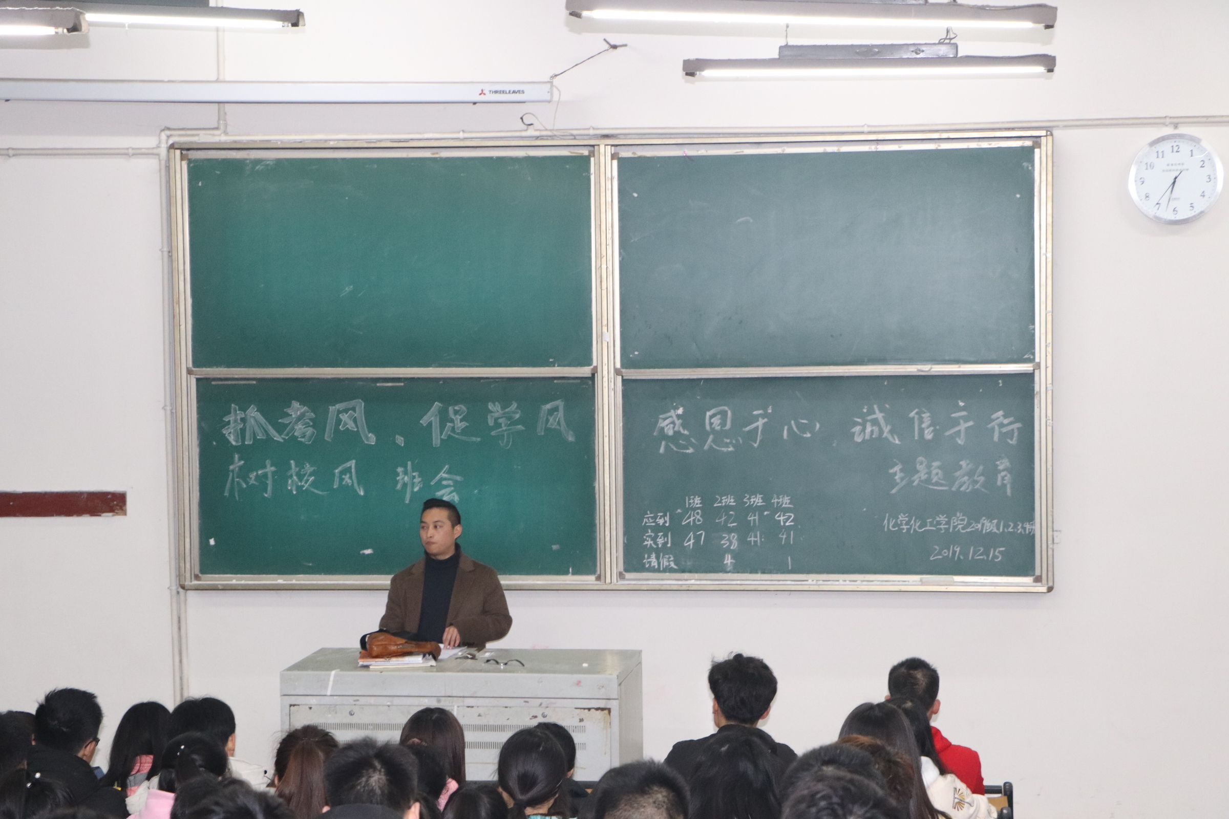 辅导员指出学生们要认真遵守学校关于考风考纪的各项规定,提高认识,端正态度,认真备考,杜绝考试违规、违纪的动机和行为。同时更希望每一名同学在人生的路上诚信考试,诚实做人,亮出真实的成绩,交出满意的答卷。辅导员强调作为一名大学生,不仅要学习专业知识,更重要的是还要具有良好的人格品质,一个人良好的品质之首是诚信,诚信考试更是学生的一个基本准则。感恩是当代社会着重强调的美德之一,学会感恩,对他人的帮助时时怀有感激之心,踏踏实实做事,使自己真正做一个有益于社会的人。班会中,辅导员提出受资助学生围绕“感恩”这一主题,通过书信形式抒发了他们浓厚的感激之情和个人今后的努力方向,这一行为教育引导了更多的同学学会感恩,珍惜机会,让他们时刻保持积极的心态,高标准要求自己,使他们全面发展。
