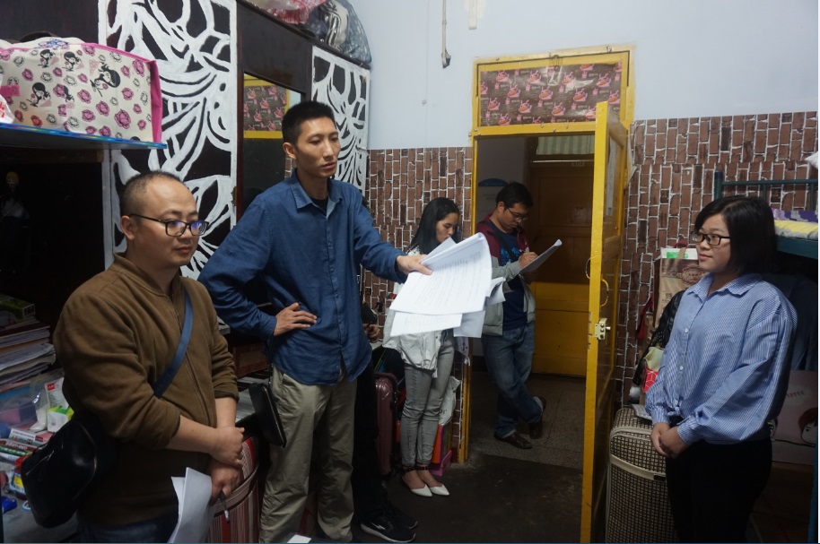 经过讲座培训、笔试考核,共有十一个寝室的十支队伍进入本次决赛。评委们依次走进每个参赛寝室,围绕寝室火灾、寝室漏电、低血糖昏厥、心肺复苏、中暑昏厥、流行性感冒等二十三项突发情况随机抽题,由寝室同学现场模拟并处理突发情况,评委根据寝室成员施救操作、语言描述、整体配合等进行现场打分。比赛过程中,面对室友“突发的疾病”,同学们有的紧急实施救助、有的“拨打120”、有的拿热毛巾等等,大家密切配合,使出浑身解数、争分夺秒,“营救”患病同学;面对火灾等突发事故,同学们根据具体情况,在保护自己的前提下,采取了报告宿管、断电、消除事故等等措施。每考核一个寝室,评委老师都会对同学们应急处理的方法进行详实的点评,进一步丰富同学们应急自救的知识。根据寝室应急处理的流畅性、操作方式的规范性、语言描述的准确度、处理问题的全面性等综合考察。