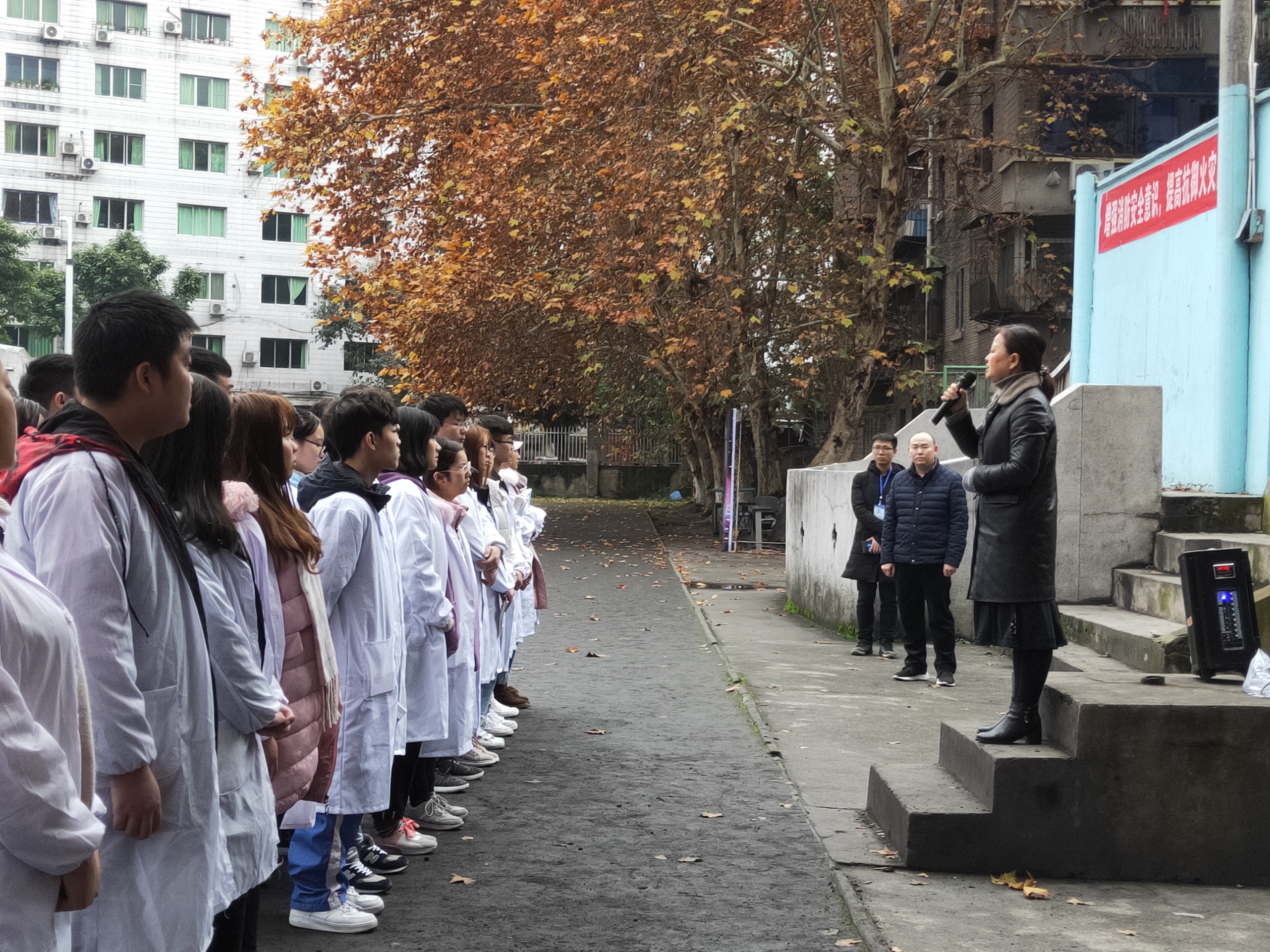 首先,学院对本次演练做了充分的准备,明确规划了合理的疏散路线,安排了学生干部在各路口引导同学们进行疏散。16时30分,随着警报声的拉响,工作人员吹响口哨发出疏散指令后,同学们在工作人员的组织下,按照预定的疏散路线快速有序地撤离到指定的安全地带,并迅速集合清点人数。整个撤离过程用时约4分钟。
