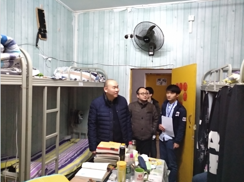 为及时排查寝室安全隐患,掌握学生思想动态,了解返校归寝情况,学院党总支部副书记屈川、学工办主任彭波以及主要学生干部于2018年3月6日20:00深入寝室进行综合检查。
