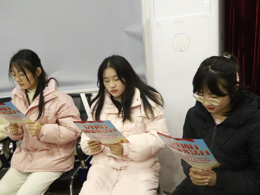 活动伊始,学工办主任崔宝玉通过分享真实案例让师生们直观地感受到宪法的权威,随后潘书记强调宪法是国家的根本法,是治国安邦的总章程,是党和人民意志的集中体现,具有最高的法律地位。接着大家集中观看了“2023年教育系统国家宪法日‘宪法晨读’活动”线上会议,全体同学跟随视频诵读宪法部分条款,学习宪法知识,交流心得体会。