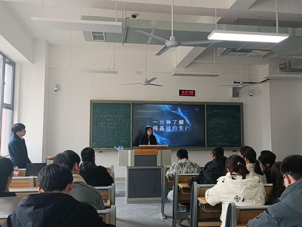 招聘会伊始,招聘经理庞宇琴以视频的形式展示了高纯晶硅的生产过程,并结合PPT向毕业生们介绍了公司培养新人的成长路径图、公司的发展前景等。随后,招聘经理庞宇琴向毕业生们播放了该公司的“朝阳计划”集训视频,同学们热情高涨。此次招聘主要针对应用化学和化学工程与工艺专业。英国威廉集团官网2019级优秀毕业生曾伟学长结合在该公司的成长经历为同学们答疑解惑,现场气氛和谐融洽。