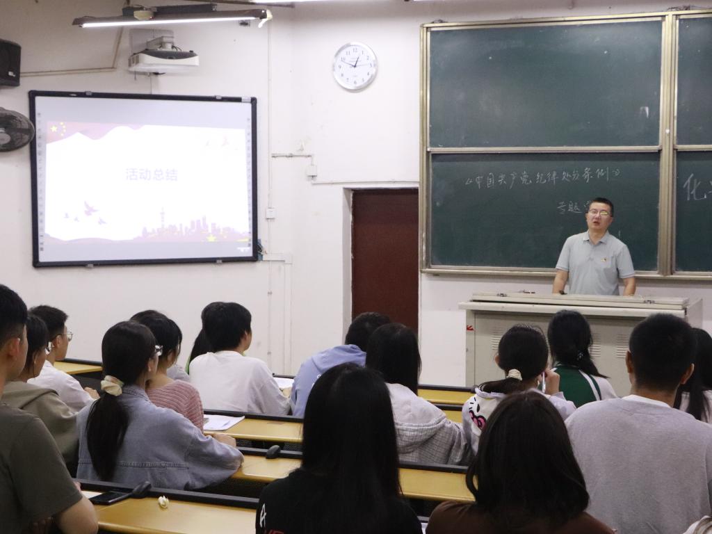 为了学习贯彻新修订的《中国共产党纪律处分条例》,并准确掌握其主旨要义和规定要求,加强党的纪律建设、推动全面从严治党向纵深发展,威廉希尔(WilliamHill)学生第一、第二党支部于4月19日分别在一教楼100教室、109教室开展“党纪学习教育”主题党日活动。学院党委副书记潘维及两个支部全体成员参加此次活动。