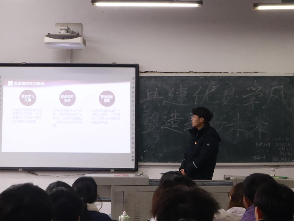 活动伊始,各团支部通过多种形式向同学们深入阐述了学风建设的深远意义。其中着重强调,学风不仅凝聚着学校代代相传的治学精神、严谨的办学态度,还是衡量人才培养高度与管理精细化程度的关键标尺,奠定着学院教育正确的发展道路。随后,各团支部结合学院的学科特色和专业发展方向,深入分析了同学们当前学习中存在的问题,如部分同学课堂参与度不高、课后作业完成质量欠佳、自主学习能力不足等。各团支部指出,作为当代大学生,应坚定以习近平新时代中国特色社会主义思想为指导,深入贯彻党的教育方针,将成为德智体美劳全面发展的社会主义建设者作为矢志不渝的追求目标,砥砺奋进,在学习生活中涵养严谨作风,正确培养个人优良学风。