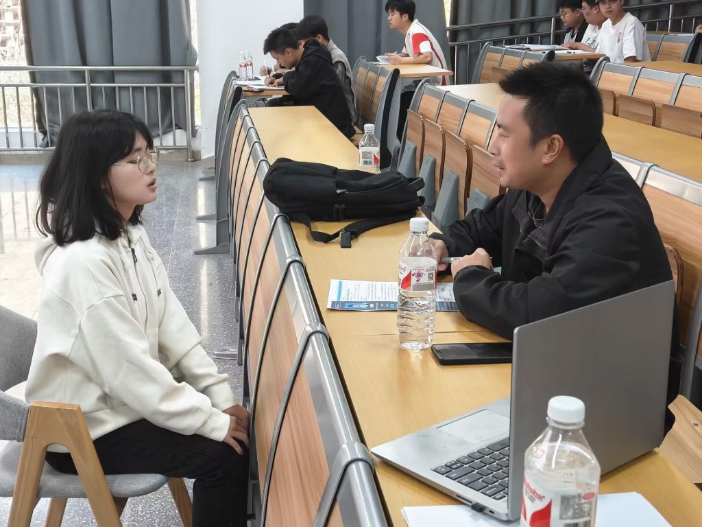 面试环节中,面试官围绕化工反应原理、基础装置工作原理及操作规范等专业知识展开提问,全面考察求职者的专业素养。求职者们结合自身学习成果、专业技能与职业规划,沉着应答,积极展现个人优势,并表达对专业岗位的强烈求职意向。最终,部分表现优异的毕业生与公司达成就业意向,顺利签订三方协议。