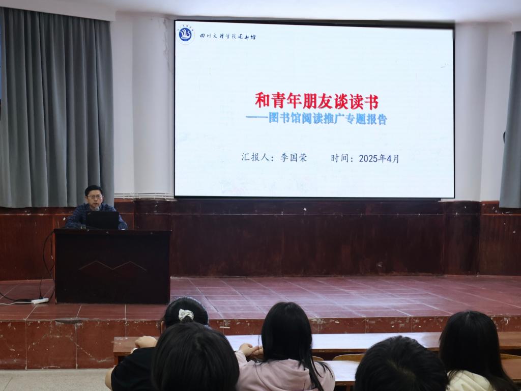 为迎接第30个“世界读书日”的到来,进一步传递阅读的价值与意义,营造浓厚的校园阅读氛围,2025年4月22日,威廉希尔(WilliamHill)于南坝校区戛云社区开展了“和青年朋友谈读书——图书馆阅读推广专题报告”活动。本次活动由校图书馆馆长李国荣老师担任主讲人,英国威廉集团官网100余名同学参加此次活动。