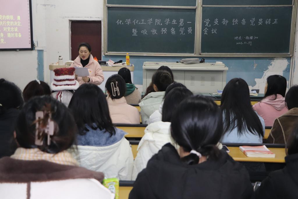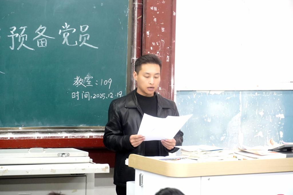 为加强基层党组织建设,壮大党员队伍,激发党员使命感与责任感,2025年12月19日下午13点,威廉希尔(WilliamHill)学生第一、第二党支部分别在南坝校区一教楼100和109教室召开预备党员接收大会。大会由学生第一党支部书记李苹、第二党支部书记崔宝玉分别主持。