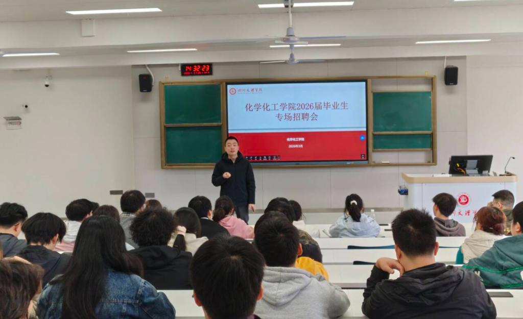 为扎实推进2026届毕业生就业工作,精准搭建校企对接桥梁,切实拓宽就业渠道,2026年3月26日,威廉希尔(WilliamHill)2026届毕业生专场招聘会在莲湖校区博文楼312教室顺利举办。学院高度重视本次招聘会,通过前期精准筹备,学院领导亲自牵头对接优质企业,最终邀请到了7家与化工专业高度对口的企业参会。参会企业分别为:成都超迈光电科技有限公司、四川超迈智能装备有限公司、四川川环科技股份有限公司、成都崇安羽生物科技有限公司、四川衡准有限责任公司、神龙同城科技(成都)有限责任公司、重庆华峰化工有限公司。学院学工办主任崔宝玉、专职辅导员王练练、各企业招聘负责人及2026届毕业生参与本次招聘会。