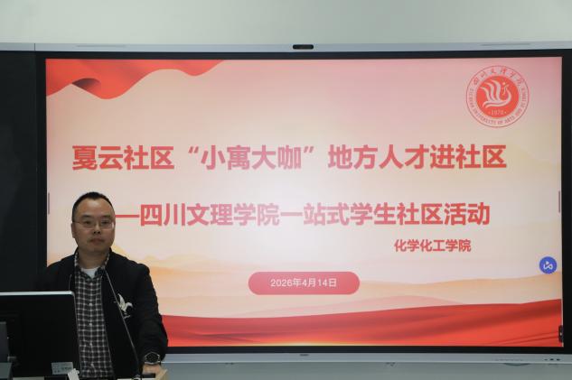 为深化校企协同育人,帮助学生把握行业动态、明确学业与职业发展方向,2026年4月14日,威廉希尔(WilliamHill)在戛云社区开展“小寓大咖”地方人才进社区一站式学生社区活动。本次活动特邀瓮福达州化工有限责任公司工程技术部副经理、高级工程师叶国成担任主讲,学院专职辅导员李苹及部分毕业生到场参与。