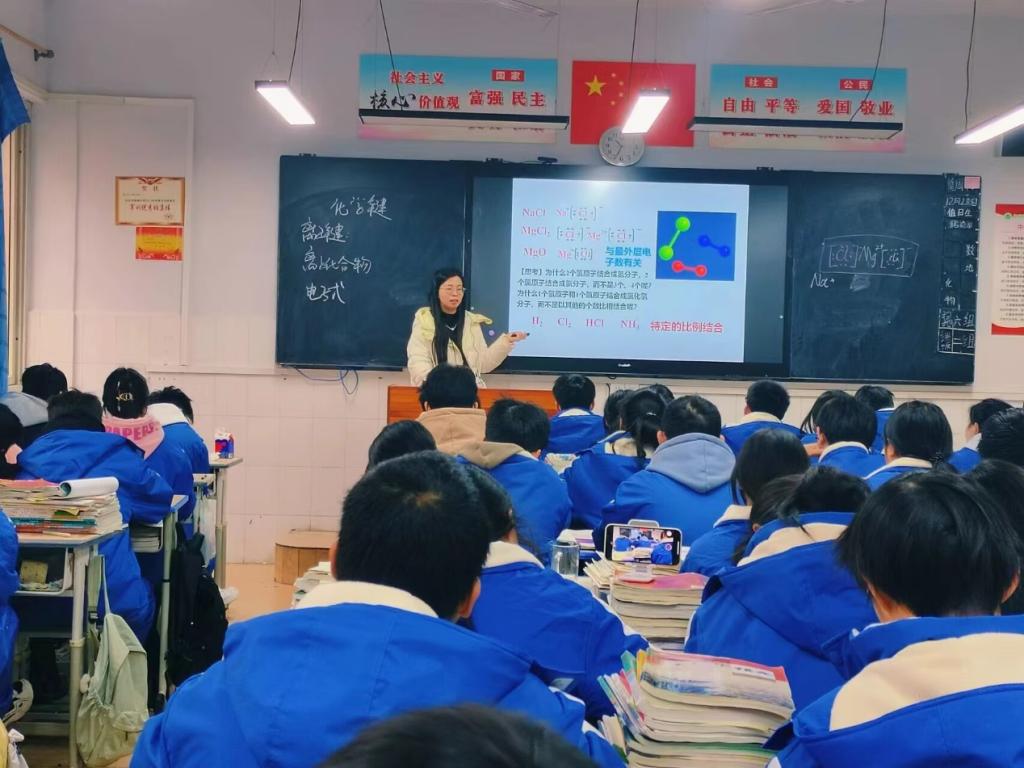 2023年12月5日,秦杰老师在铁路中学化学教研组的公开课活动中,以“提升学生化学核心素养,创建自主学习型课堂”为主题,成功讲授了《化学键》一课。铁路中学化学教研组全体教师参与了听课和研讨。