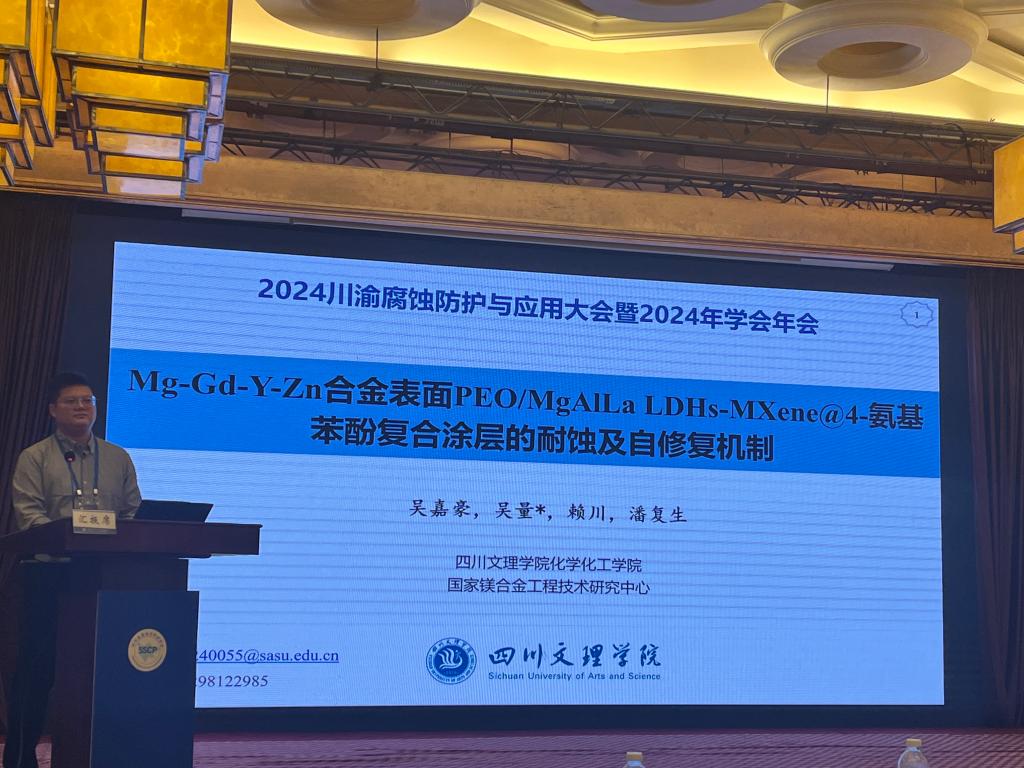 会议由四川省腐蚀与防护学会和重庆市腐蚀与防护学会主办,四川轻化工大学、中石油西南油气田分公司天然气研究院等8家单位联合承办。会议涉及腐蚀及控制技术的国内外最新进展、缓蚀剂、耐蚀材料、涂镀层、防锈技术、表面技术、电化学保护、工程防腐蚀、阴极保护、高温腐蚀与防护、海洋新材料及防护技术、医用材料腐蚀与防护、自然环境(大气//土壤)腐蚀、腐蚀防护相关技术标准化等方面内容,吸引了川渝地区120余名腐蚀防护领域的行业专家、高校师生、企事业单位领导及代表出席了会议,共计学术报告42场。其中,吴嘉豪博士代表英国·威廉希尔(WilliamHill)集团有限公司-官方网站在会议上做了题为Mg-Gd-Y-Zn合金表面PEO/MgAlLa LDHs-MXene@4-氨基苯酚复合涂层的耐蚀及自修复机制”的报告,为高强高韧镁合金易腐蚀和表面涂层损坏而加速腐蚀的问题,提出了一种创新的解决方案,获得了与会同行的高度评价。吴嘉豪博士通过参与此次会议,对腐蚀与防护的前沿动态有了更深入的理解,并与来自其他高校和企业的专家学者进行了广泛交流,为吴博士的个人专业发展提供了重要的信息资源和思维启发,同时也将为威廉希尔(WilliamHill)功能材料专业的教育教学改革与创新发展,以及高素质应用型复合型人才的培养,提供有力的参考和支持。