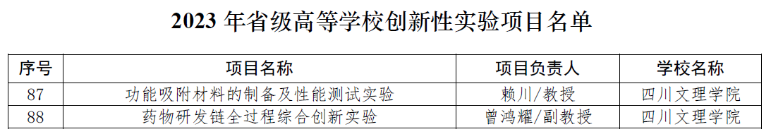 学院喜获两项四川省2023年首批高等学校创新性实验立项建设